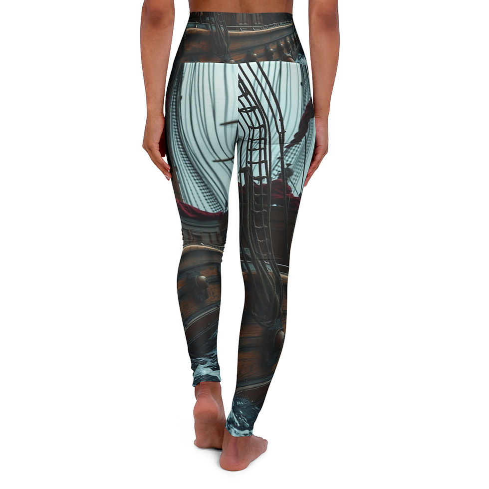 High-Waisted Yoga Leggings — Nautical Ship Rigging All-Over Print